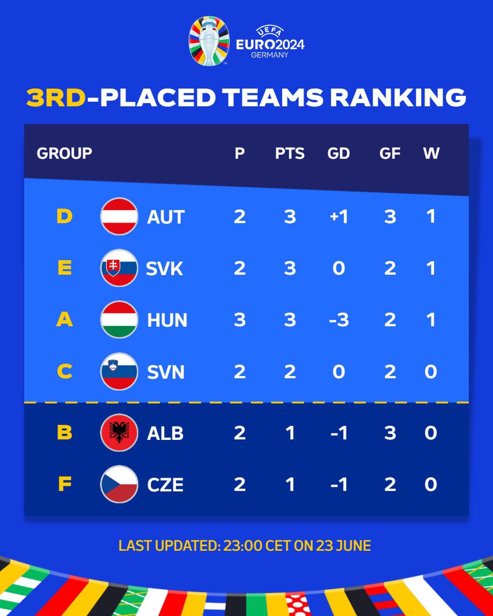 It is worth noting that in the UEFA EURO 2024 tournament, only the highest-ranked teams in every group secure a spot in the round of 16.