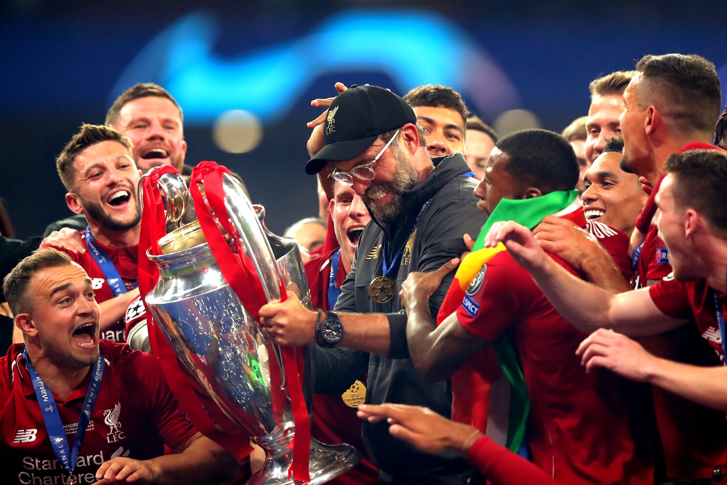 Jurgen Klopp, Manager of Liverpool celebrates with the Champions League Trophy after winning the UEFA Champions League Final between Tottenham Hotspur and Liverpool at Estadio Wanda Metropolitano on June 01, 2019 in Madrid, Spain. (Photo by Alexander Hassenstein – UEFA/UEFA via Getty Images)